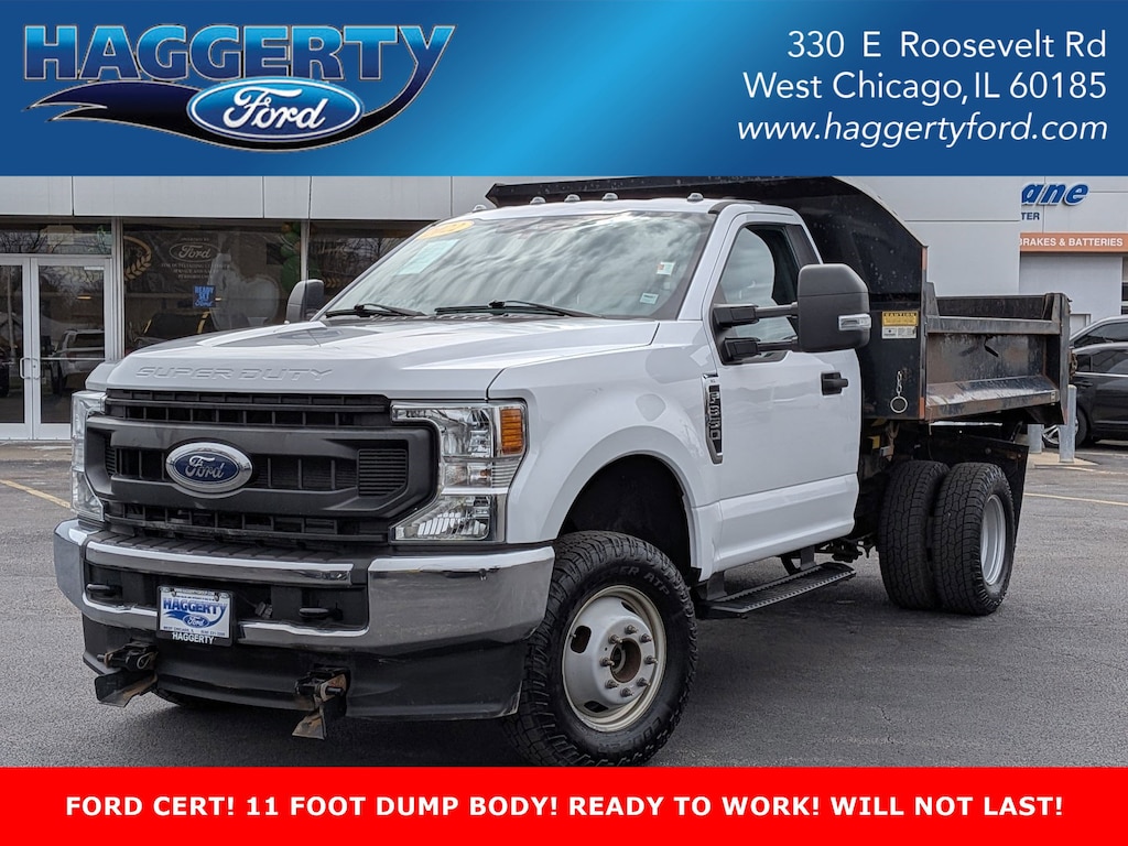Clean CARFAX. GREAT VEHICLE HISTORY! ONE OWNER CLEAN CARFAX, READY TO WORK! WE SOLD IT NEW! 11 FT STEEL DUMP! RECENT TIRES & BRAKES! LOW MILES! 4WD ***1 OWNER, LOCALLY OWNED, AND TRADED IN HERE AT HAGGERTY FORD!!***, ***LOCALLY OWNED AND TRADED IN HERE AT HAGGERTY FORD!!***, ***Ford Blue Advantage GOLD Certified Pre-Owned!!***, ***GREAT VALUE HERE! ALL FORD GOLD CPO WARRANTY AND BENEFITS INCLUDED IN THE PRICE!!***4WD, 110V/400W Outlet, 17" Argent Painted Steel Wheels, 397 Amp Alternators, 4 Speakers, 4-Wheel Disc Brakes, 4G LTE Wi-Fi Hotspot Removal, 6-Ton Hydraulic Jack, ABS brakes, Advanced Security Pack Inclination Sensor Removal, Air Conditioning, AM/FM radio, AM/FM Stereo w/MP3 Player, Brake assist, Chrome Front Bumper, Compass, Delay-off headlights, Dual 78 AH Battery, Dual front impact airbags, Dual front side impact airbags, Dual rear wheels, Emergency communication system: 911 Assist, Engine Block Heater, Folding Trailer Tow Mirrors w/Power Heated Glass, Front anti-roll bar, Front Center Armrest w/Storage, Front License Plate Bracket, Front reading lights, Fully automatic headlights, GVWR: 14,000 lb Payload Package, HD Vinyl 40/20/40 Split Bench Seat, Limited Slip w/4.30 Axle Ratio, Low tire pressure warning, MyKey, Order Code 640A, Outside temperature display, Overhead airbag, Passenger cancellable airbag, Passenger vanity mirror, Platform Running Boards, Power Equipment Group, Power Front Side Windows, Power Locks, Power steering, Power windows, Rear anti-roll bar, Rear View Camera & Prep Kit, Remote Keyless Entry, Snow Plow Prep Package, Steering wheel mounted audio controls, Steering Wheel-Mounted Cruise Control, SYNC Communications & Entertainment System, Tachometer, Telescoping steering wheel, Tilt steering wheel, Traction control, Trailer Brake Controller, Trip computer, Utility Lighting System, Variably intermittent wipers, XL Value Package. Certified. Ford Gold Certified Details: