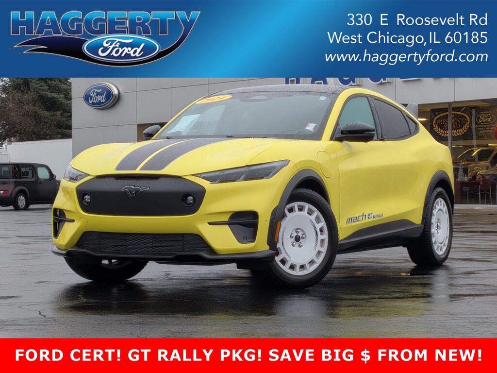 Clean CARFAX. GT Rally Rare Rally Package!, 10 Speakers, 4-Wheel Disc Brakes, ABS brakes, Adaptive suspension, Apple CarPlay/Android Auto, Auto High-beam Headlights, Auto-dimming Rear-View mirror, Automatic temperature control, Black Painted Steel Roof, Brake assist, Compass, Door, Wheel, Roof & Bumper Trim, Dual front impact airbags, Dual front side impact airbags, Electronic Stability Control, Emergency communication system: 911 Assist, Equipment Group 400A, Exterior Parking Camera Rear, Ford Performance Front Seats, Four wheel independent suspension, Front anti-roll bar, Front dual zone A/C, Front Recovery Hook, Fully automatic headlights, Heated door mirrors, Heated front seats, Hood & Decklid Stripes, Illuminated entry, Knee airbag, Low tire pressure warning, Mach-E Rally Door Graphics, Memory seat, Mustang Mach-E GT Performance Upgrade, Mustang Mach-E Rally, Navigation system: Connected Navigation, Occupant sensing airbag, Overhead airbag, Oxford White Steering Wheel/Door/IP Interior Trim, Panic alarm, Power door mirrors, Power Liftgate, Power passenger seat, Power windows, Radio data system, Rain sensing wipers, Rallycross-Tuned MagneRide Damping System, Rear anti-roll bar, Rear side impact airbag, Rear window defroster, Rear window wiper, Security system, SiriusXM Radio w/360L, Speed control, Speed-sensing steering, Speed-Sensitive Wipers, Split folding rear seat, Sport Pedals, Steering wheel mounted audio controls, SYNC 4A w/Enhanced Voice Recognition, Telescoping steering wheel, Tilt steering wheel, Traction control, Trip computer, Turn signal indicator mirrors, Unique Front Splitter in Dark Carbonized Gray, Unique Grille Shield in Dark Carbonized Gray, Unique Rear Spoiler in Dark Carbonized Gray, Variably intermittent wipers, Wheels: 19" High Gloss Oxford White. Certified. Ford EV Certified Details: