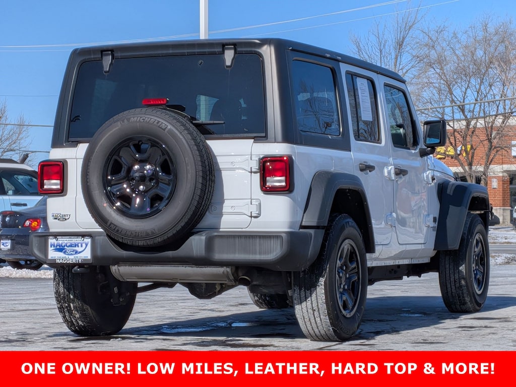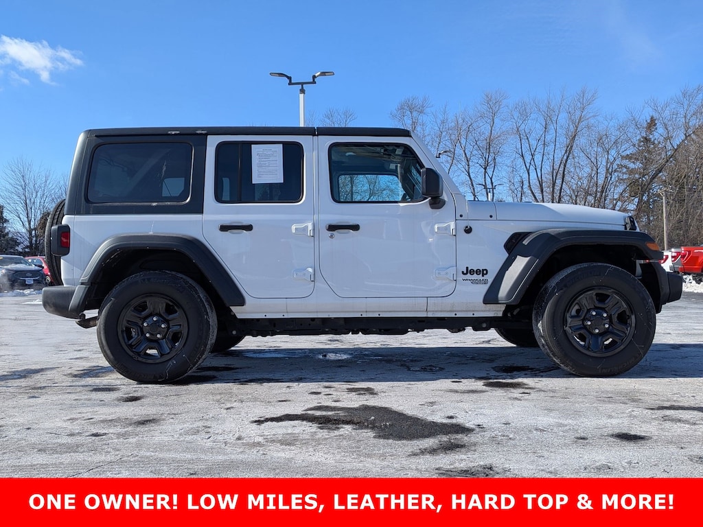 Clean CARFAX. Unlimited Sport USB PORTS!, BLUETOOTH!, GREAT VEHICLE HISTORY!, ONE OWNER CLEAN CARFAX, CLEAN CARFAX, ONE OWNER, ***ONE OWNER***3 PIECE REMOVABLE HARDTOP***FACTORY LEATHER SEATING***ANTI-SPIN DIFFERENTIAL REAR AXLE***ONLY 34K MILES & FUN TO DRIVE YEAR ROUND***, COME ON, IT'S A JEEP!!!!, 4WD, Black w/Leather Trimmed Bucket Seats, 3.45 Rear Axle Ratio, 4-Wheel Disc Brakes, 8 Speakers, ABS brakes, Air Conditioning, AM/FM radio, Anti-Lock 4-Wheel Disc Brakes, Anti-Spin Differential Rear Axle, Aux Battery, Black 3-Piece Hard Top, Brake assist, Cloth Low-Back Bucket Seats, Compass, Deep Tint Sunscreen Windows, Delay-off headlights, Driver door bin, Driver vanity mirror, Dual front impact airbags, Dual front side impact airbags, Electronic Stability Control, Freedom Panel Storage Bag, Front anti-roll bar, Front Bucket Seats, Front Center Armrest w/Storage, Front fog lights, Front reading lights, Integrated roll-over protection, Low tire pressure warning, MOPAR Black Stitched Leather, Non-Lock Fuel Cap w/o Discriminator, Normal Duty Suspension, Occupant sensing airbag, Outside temperature display, ParkView Rear Back-Up Camera, Passenger door bin, Passenger vanity mirror, Power steering, Quick Order Package 22B Sport, Radio data system, Radio: Uconnect 3 w/5" Display, Rear anti-roll bar, Rear reading lights, Rear Window Defroster, Rear Window Wiper/Washer, Speed control, Split folding rear seat, Steering wheel mounted audio controls, Stop-Start Dual Battery System, Tachometer, Telescoping steering wheel, Tilt steering wheel, Traction control, Trip computer, Variably intermittent wipers, Wheels: 17" x 7.5" Black Steel Styled. Serving the communities of West Chicago, Winfield, Wheaton, Naperville, St. Charles, Batavia, Geneva, Aurora, Carol Stream, Downers Grove, Glendale Heights, Warrenville, and North Aurora.